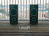 Two speakers sit on a balcony, four floors above a busy London road. Framed like a stage with an active backdrop, the speakers perform to camera, sounding out the unmistakable sounds of an appreciative audience. Captions give us the official track descriptions of the recordings as they laugh, laugh and clap, and applaud. Performer stage and audience are reversed and reflected as the intoxicating sound of approval projects back onto the viewer.