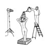 Tom Molloy's pencil drawing 'Aftermath No. 7', drawing on photograph, 'Graven No.2', and photograph 'Contact' directly address media representation of violence and trauma resulting from international conflicts. Focusing on the role of photography in the creation of iconic images of horror and distress, Molloy's scrutinises the ramifications of the photographic document in the representation of "The Other". The underlying ethics of authoritative and seemingly objective imagery are also addressed in Suzanne Mooney's work. The vinyl on mirror piece from the series 'Make love to the camera' that she has made specifically for Trajector, uses imagery adapted from schematic representations found in photo-manuals on nude photography. ‘Make love to the Camera’ playfully exposes the values and power play contained within these instructive images.